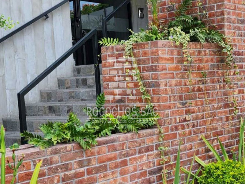 Los ladrillos rococho en las áreas exteriores brindan un especial toque de elegancia a los mas variados diseños rusticos.