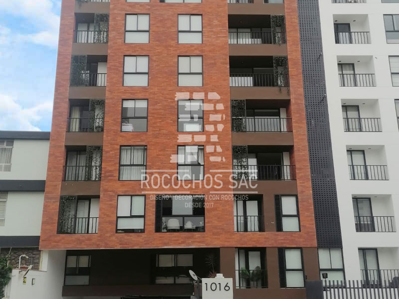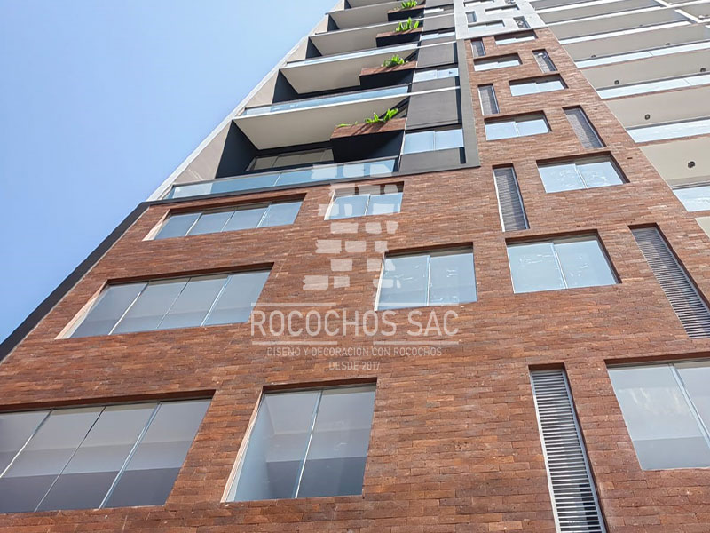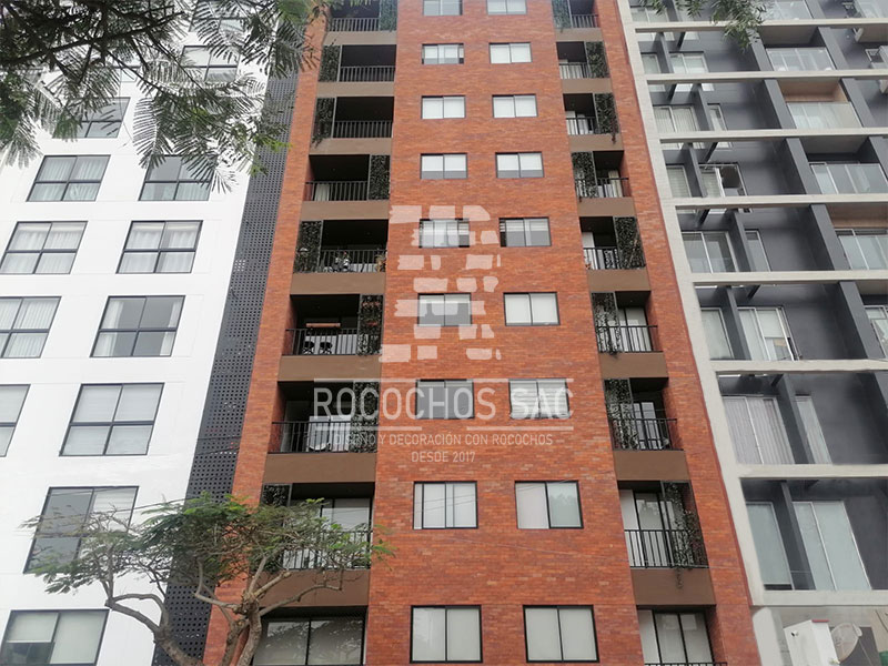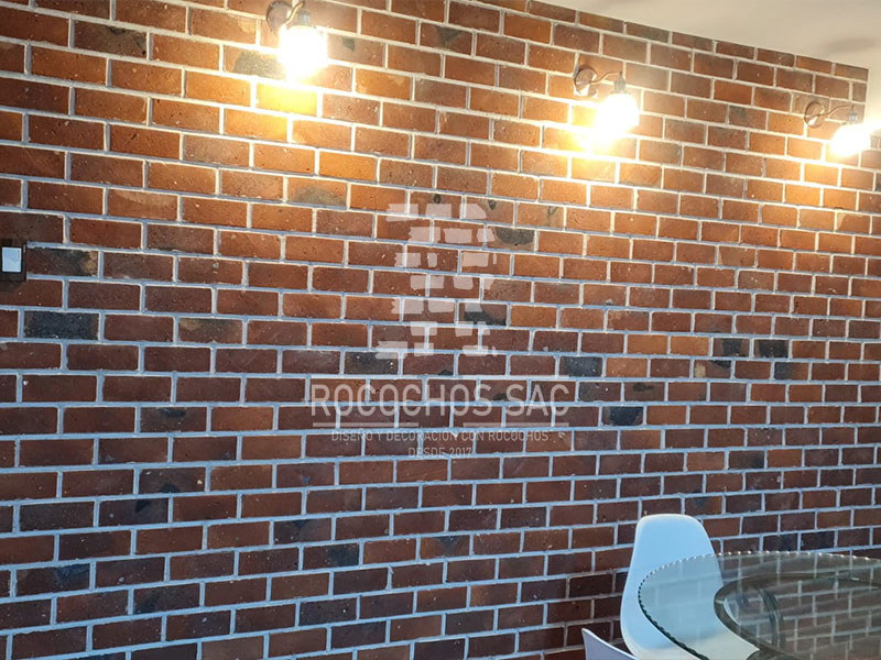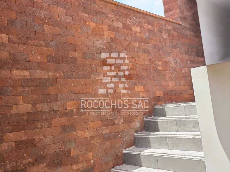 Aquí algunos de nuestros trabajos realizados en diversas partes del país con Ladrillo rococho modelo Verano medidas 8x20x1.5cm. Textura lisa. Color: Rojos, negros, vetas blancas. Bordes perfilados. Instalación con o sin fragua a elección del cliente. En ambientes interiores, exteriores, comerciales y edificios.